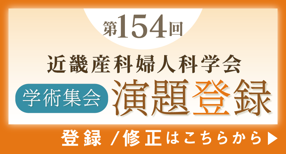 | ■ 2025年5月7日 | 第152回近畿産科婦人科学会 総会 学術集会の「参加登録」について、参加登録サイトへのリンクを追記いたしました。詳しくはこちら |